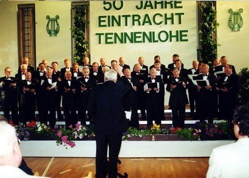 In Tennenlohe, damals ein selbständiger Ort mit etwa 900 Einwohnern wurde, wie das Gründungsprotokoll berichtet “der Wunsch laut, einen Gesangverein zu haben”. So “sind beherzte Männer zusammengetreten und haben mit Mühe und Aufopferung einen Gesangverein ins Leben gerufen”. Es war Sonntag, der 9. Dezember 1950, an dem sich neun “sangesfreudige Männer” in der Gastwirtschaft Haußner zur Gründung versammelt hatten. Es steht geschrieben: “Leider waren nur 9 Männer erschienen, aber trotzdem ließen wir von unserem Vorhaben nicht ab....”.